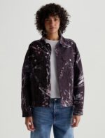 The Haylee Jacket features expressive color on a black base. Cut for a relaxed fit, this oversized trucker is designed in 100% cotton sateen.